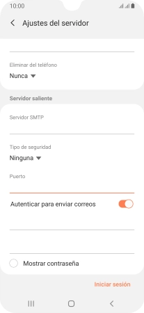Pulsa el indicador junto a "Autenticar para enviar correos" para desactivar la función.