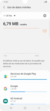 Puedes ver cuántos datos móviles has utilizado, por ejemplo, cuando has utilizado el navegador de Internet o cuando has enviado y recibido correo electrónico.