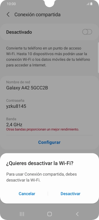 Pulsa el indicador bajo "Conexión compartida" para activar la función.