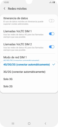 Selecciona el tipo de red en el Samsung Galaxy A50 Android 9.0