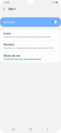 Pulsa el indicador para activar o desactivar el uso de la tarjeta SIM.