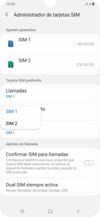 3. Selecciona la tarjeta que quieres usar por defecto para las llamadas