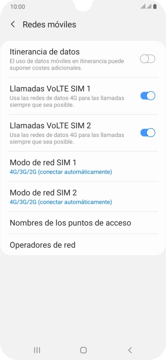 Pulsa en el campo junto a la conexión de datos para activarla.