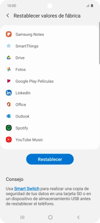 Si el teléfono reacciona lentamente o de alguna manera no funciona bien, en algunos casos ayuda el restablecer la configuración predeterminada. Así se borran todas las configuraciones que has creado en el teléfono. Es recomendable hacer una copia de seguridad de las fotografías y los vídeos para que no se pierdan.