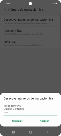 Pulsa Desactivar números de marcación fija.