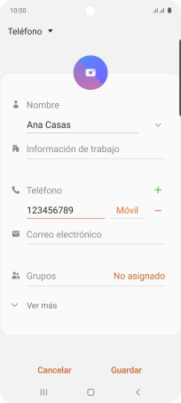 Sigue las indicaciones de la pantalla para añadir más información como, por ejemplo, la dirección de correo electrónico y el timbre de llamada personal.