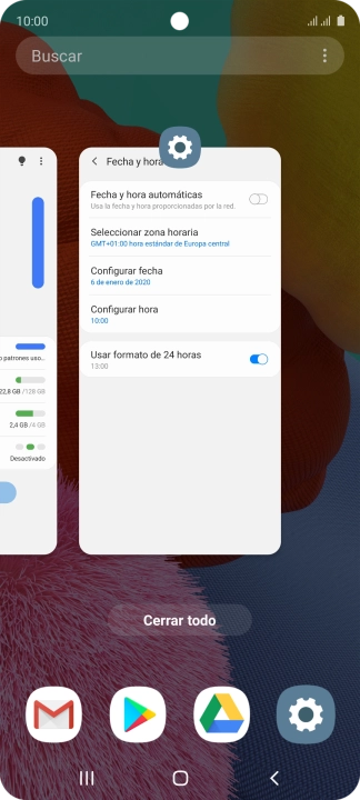 Para cerrar una sola aplicación en ejecución, desliza el dedo hacia arriba sobre la aplicación deseada.
