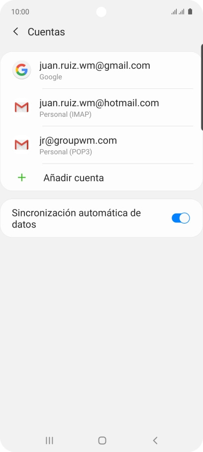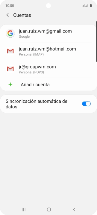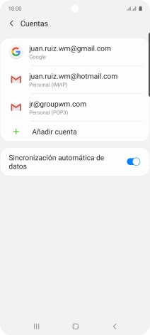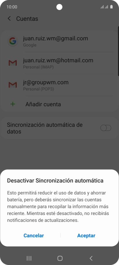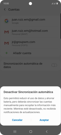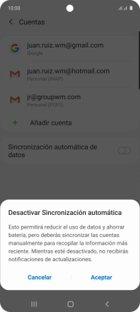 Pulsa el indicador junto a "Sincronización automática de datos" para activar o desactivar la función.