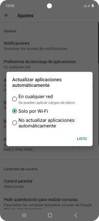 Para activar la actualización automática de apps a través de wifi, pulsa Solo por Wi-Fi.