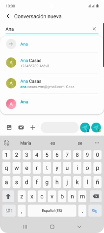 Pulsa en el campo de búsqueda e introduce las primeras letras del nombre del destinatario deseado.