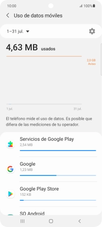 Puedes ver cuántos datos móviles has utilizado, por ejemplo, cuando has utilizado el navegador de Internet o cuando has enviado y recibido correo electrónico.