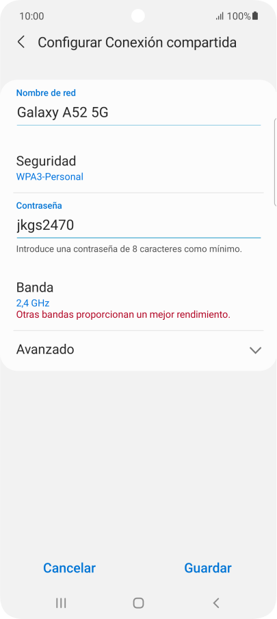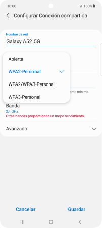 Pulsa WPA3-Personal para proteger la conexión wifi con una contraseña.