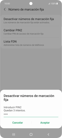 Pulsa Desactivar números de marcación fija.