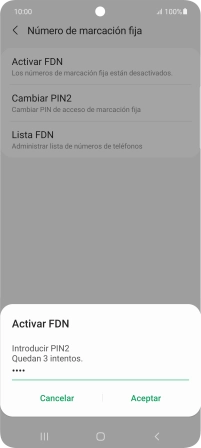 Introduce el código PIN2 y pulsa Aceptar.