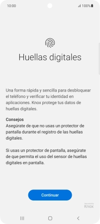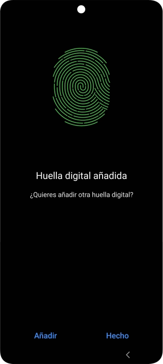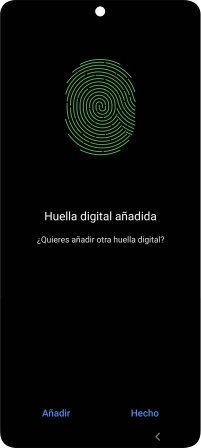 Sigue las indicaciones de la pantalla para crear una huella digital como código de seguridad.