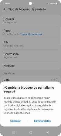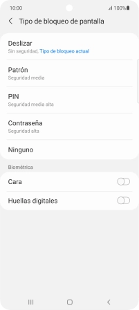 Pulsa Tipo de bloqueo de pantalla e introduce el código de seguridad extra que has creado anteriormente.