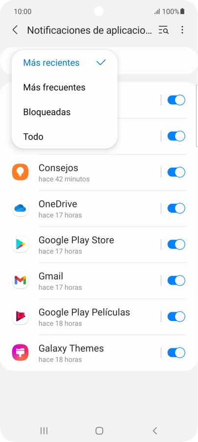 Pulsa el indicador junto a las apps deseadas para activar o desactivar la función.