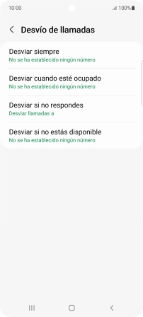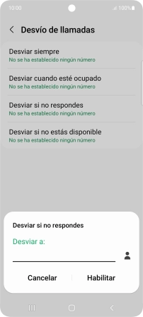 Puedes desviar al contestador las llamadas entrantes en estas situaciones: siempre, solo cuando estés ocupado, solo cuando no respondas o solo cuando estés no disponible.
