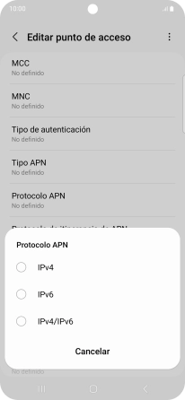 9. Selecciona el protocolo del punto de acceso (APN) en roaming
