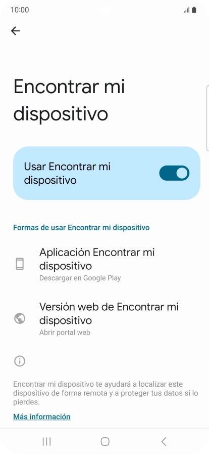Pulsa el indicador junto a "Usar Encontrar mi dispositvo" para activar la función.