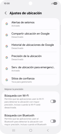 Si pulsas el indicador junto a "Mejorar la precisión de la ubicación" para desactivar la función, el teléfono podrá encontrar tu posición exacta con ayuda de los satélites GPS, pero le llevará más tiempo ya que no tiene acceso a informaciones complementarias de la red móvil o una red wifi cercana.