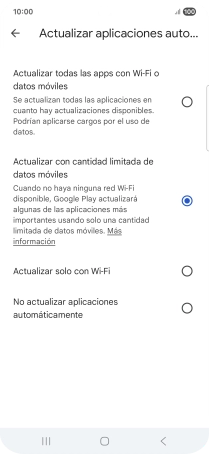 Si activas la actualización de apps con datos limitados a través de la red móvil, se actualizarán tus apps de forma automática utilizando la red móvil cuando la red wifi no esté al alcance.