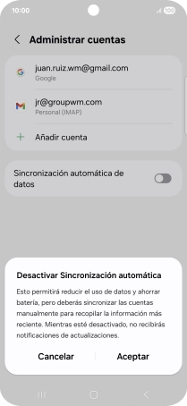 Pulsa el indicador junto a "Sincronización automática de datos" para activar o desactivar la función.