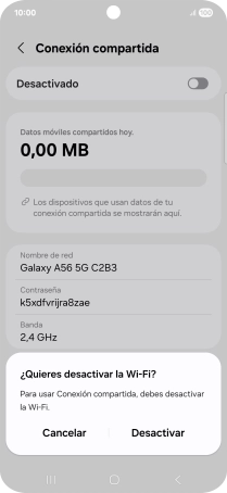 Pulsa el indicador bajo "Conexión compartida" para activar la función.