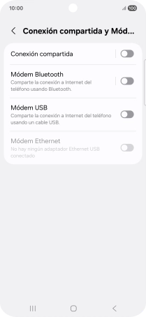 Pulsa Conexión compartida y Módem.