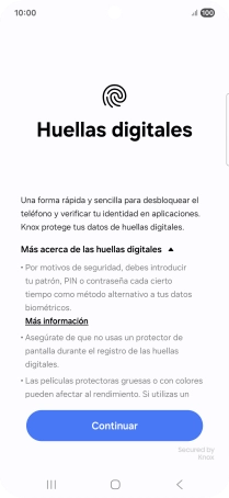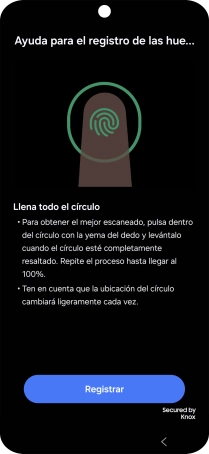 Sigue las indicaciones de la pantalla para crear una huella digital como código de seguridad.