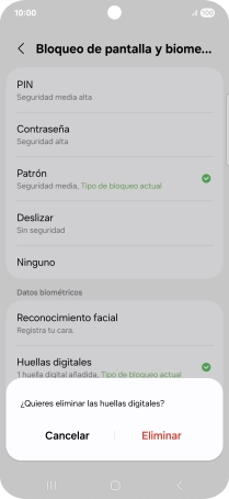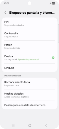 Pulsa Bloqueo de pantalla y biometría e introduce el código de seguridad extra que has creado anteriormente.