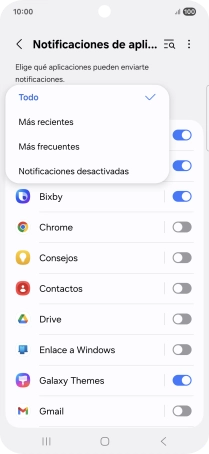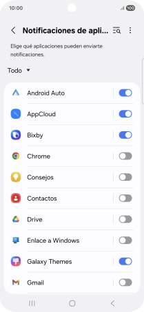 Pulsa el indicador junto a las apps deseadas para activar o desactivar la función.