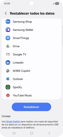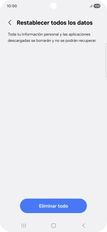 Pulsa Eliminar todo. Espera unos instantes mientras el teléfono restablece la configuración predeterminada. Sigue las indicaciones de la pantalla para configurar el teléfono y dejarlo listo para su uso.