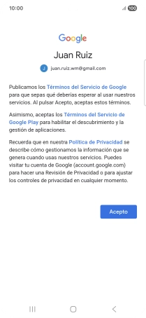 Pulsa Acepto y sigue las indicaciones de la pantalla para seleccionar los ajustes de tu cuenta de Google.