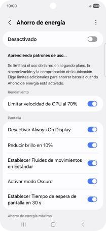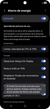 Pulsa el indicador bajo "Ahorro de energía" para activar la función.