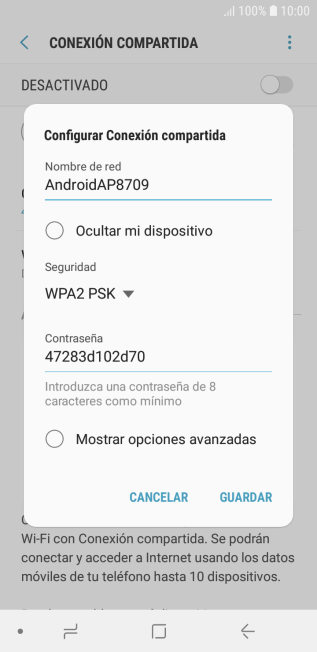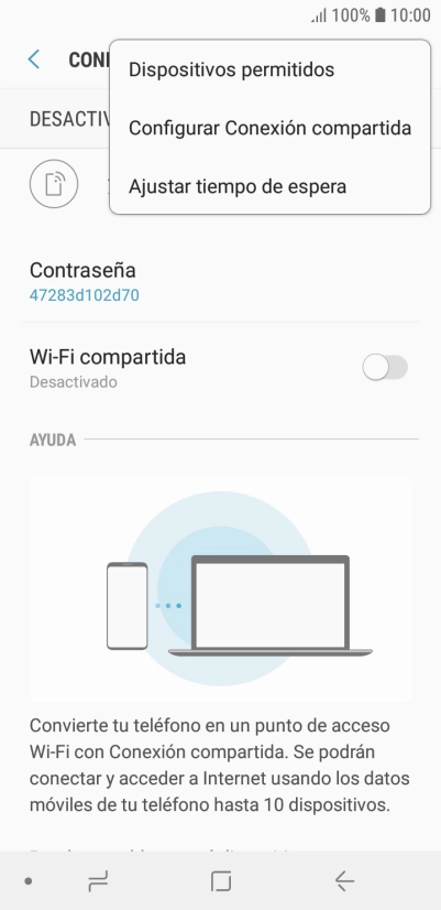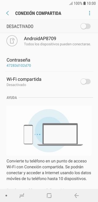 Pulsa el indicador bajo "CONEXIÓN COMPARTIDA" para activar la función.