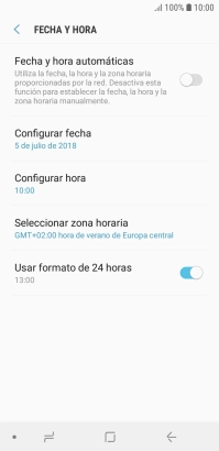 Pulsa el indicador junto a "Fecha y hora automáticas" para activar la función.