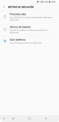 Si seleccionas Solo teléfono, el teléfono podrá encontrar tu posición exacta, pero le llevará más tiempo ya que no tiene acceso a informaciones complementarias de la red móvil o una red wifi cercana.