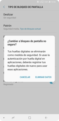 Pulsa Tipo de bloqueo de pantalla e introduce el código de seguridad extra que has creado anteriormente.