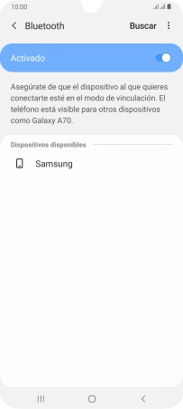 Vincula un dispositivo Bluetooth al Samsung Galaxy A70 Android 9.0