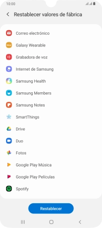 Pulsa Restablecer valores de fábrica.