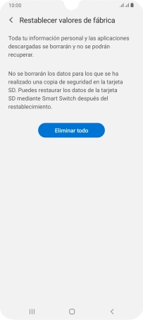 Pulsa Eliminar todo. Espera unos instantes mientras el teléfono restablece la configuración predeterminada. Sigue las indicaciones de la pantalla para configurar el teléfono y dejarlo listo para su uso.