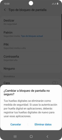 Pulsa Tipo de bloqueo de pantalla e introduce un código de seguridad adicional.