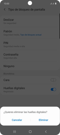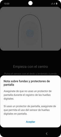 Sigue las indicaciones de la pantalla para crear una huella digital como código de seguridad.