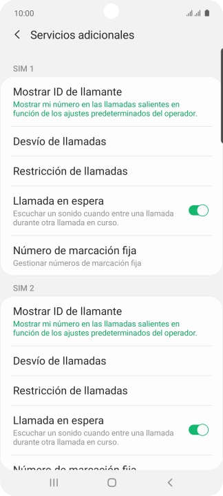 Pulsa el indicador junto a "Llamada en espera" bajo la tarjeta SIM deseada para activar o desactivar la función.