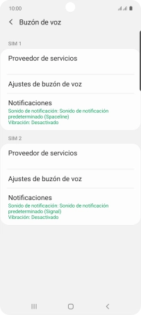 Pulsa Ajustes de buzón de voz bajo la tarjeta SIM deseada.