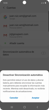 Pulsa el indicador junto a "Sincronización automática de datos" para activar o desactivar la función.