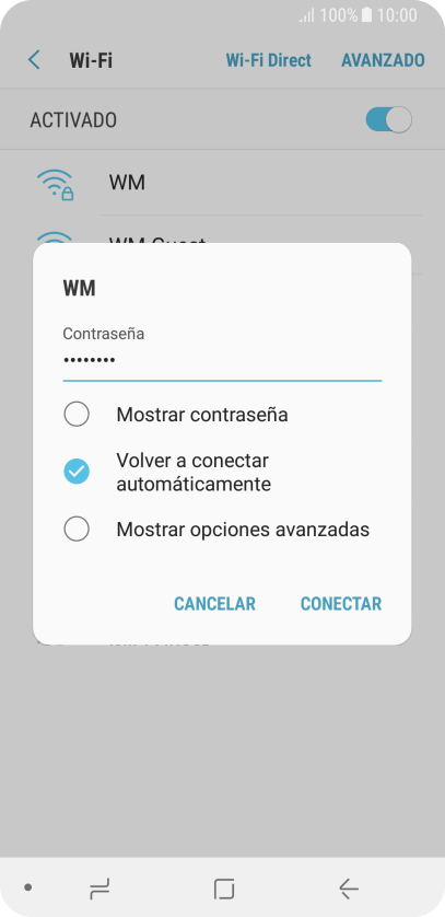 Introduce la contraseña de la red wifi y pulsa CONECTAR.