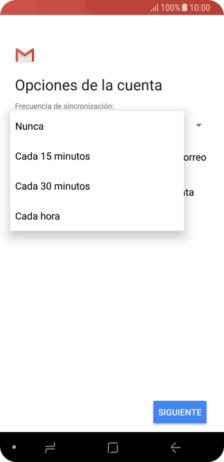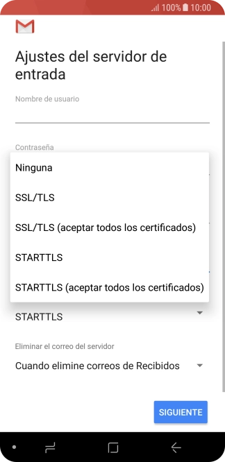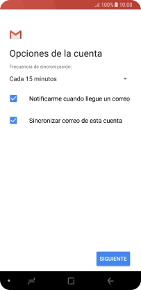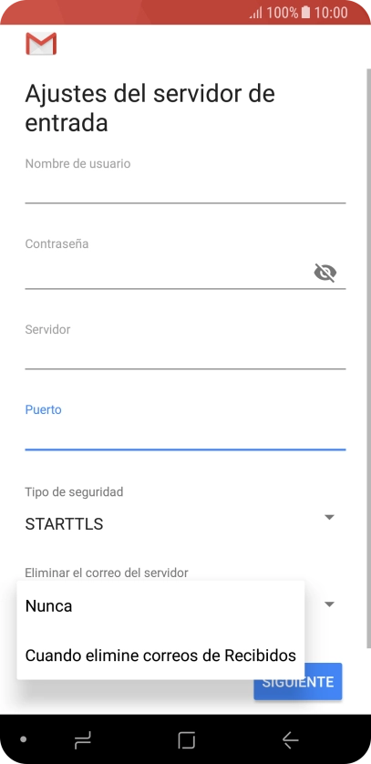 Pulsa Cuando elimine correos de Recibidos para eliminar los correos electrónicos del servidor cuando los borras del teléfono.