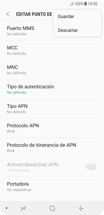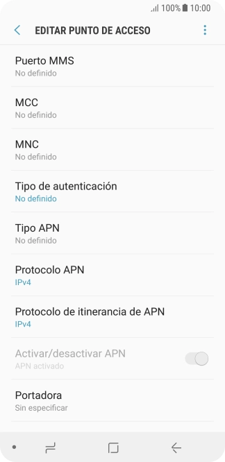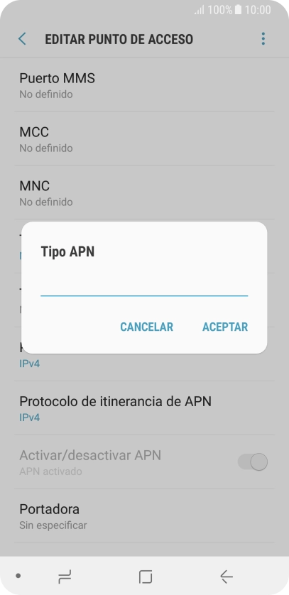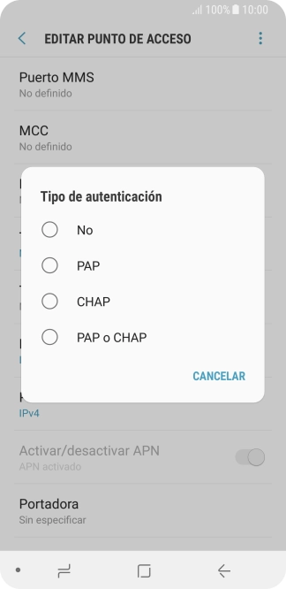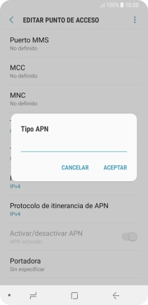 9 Selecciona el tipo de APN